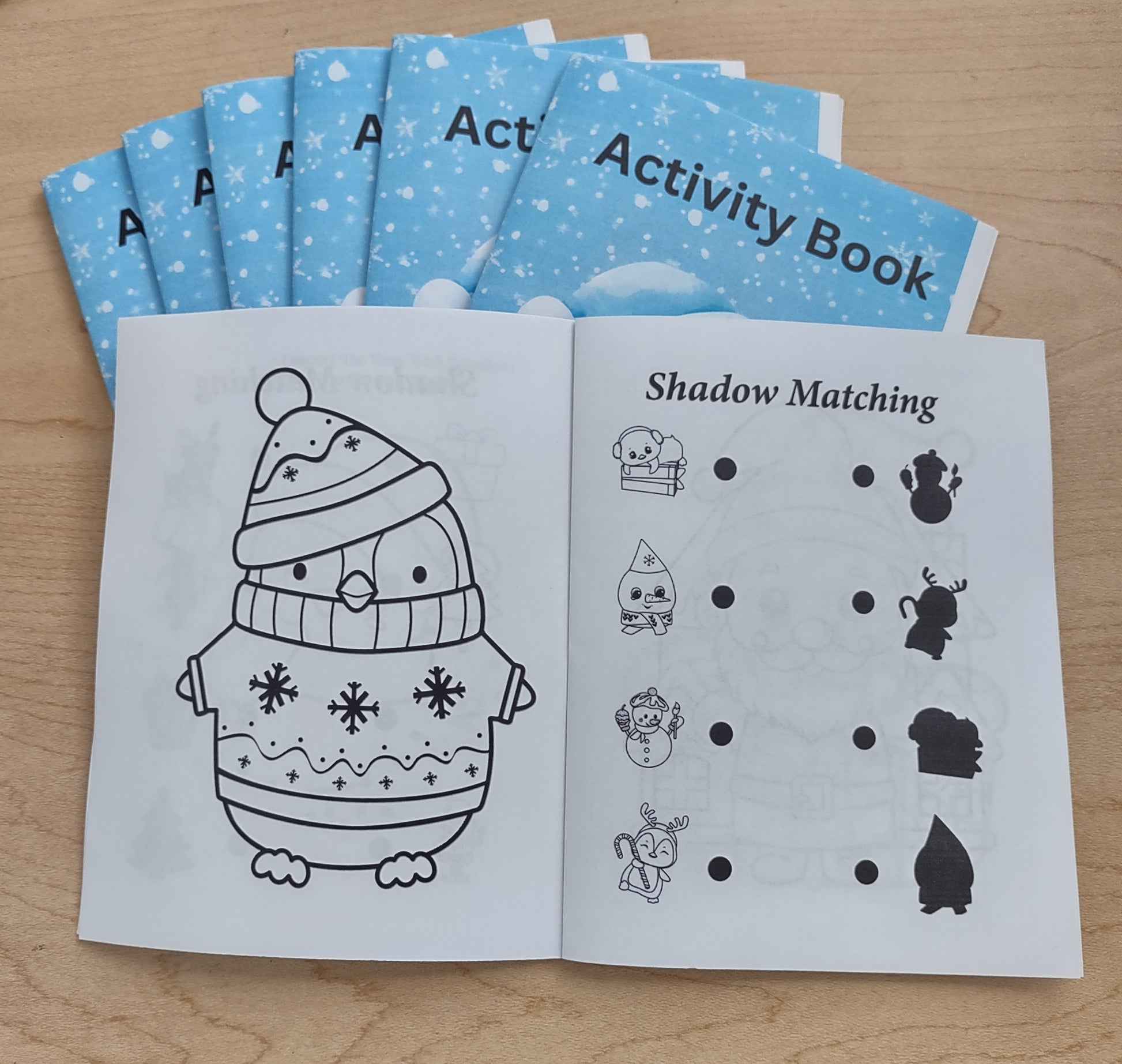 Holiday Activity book. Make great stocking stuffers and school gift-sharing. Books measure 4.25x5.5 inches. Activities include: mazes, coloring pages, connect the dots, and shadow matching. Enjoy.